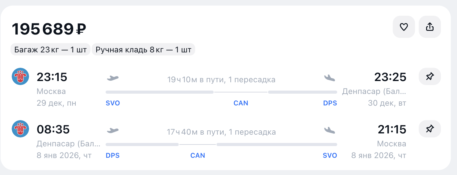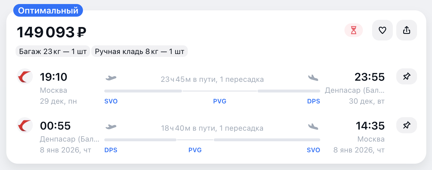 Вариантов перелёта много, цены меняются каждый день. Билеты подбираем индивидуально. Пишите для получения актуальной информации.