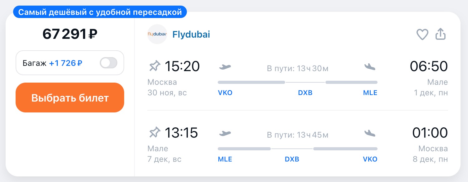 Экономичный рейс с пересадкой