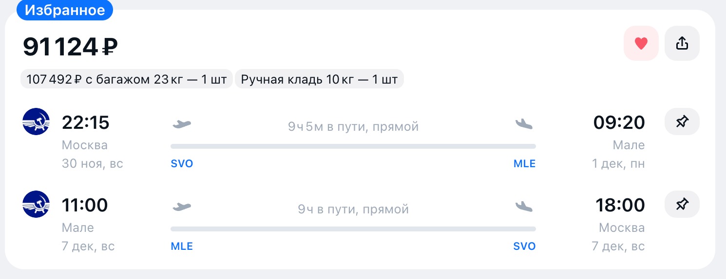 Рекомендуемые рейсы на декабрь