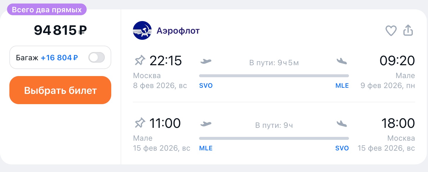 Рекомендуемые рейсы на февраль