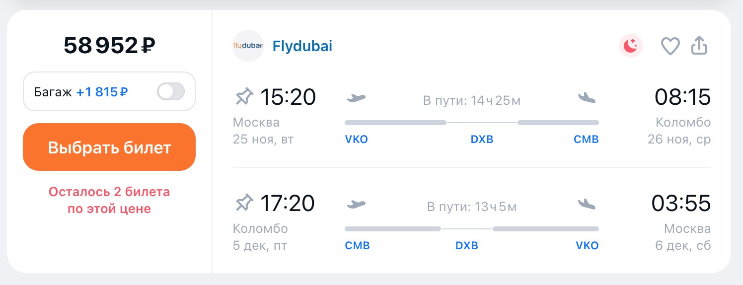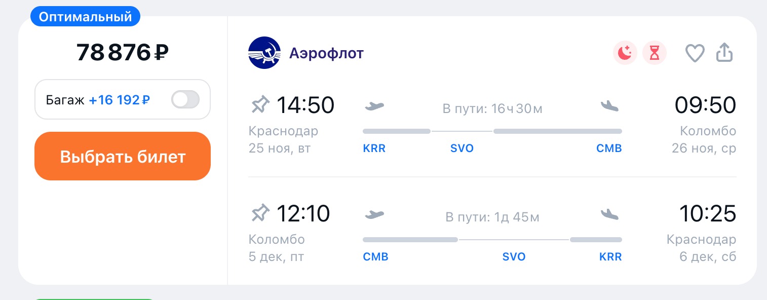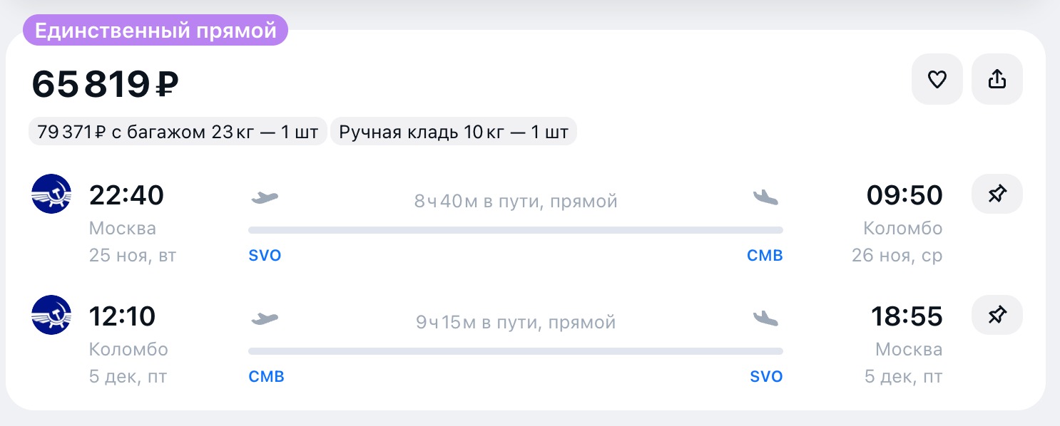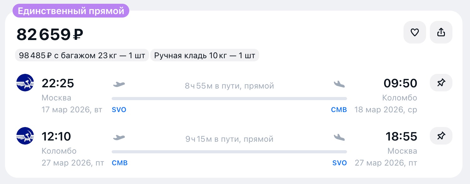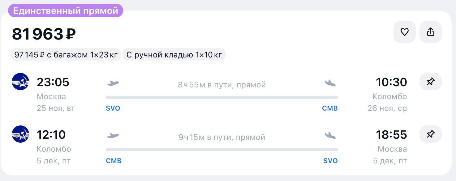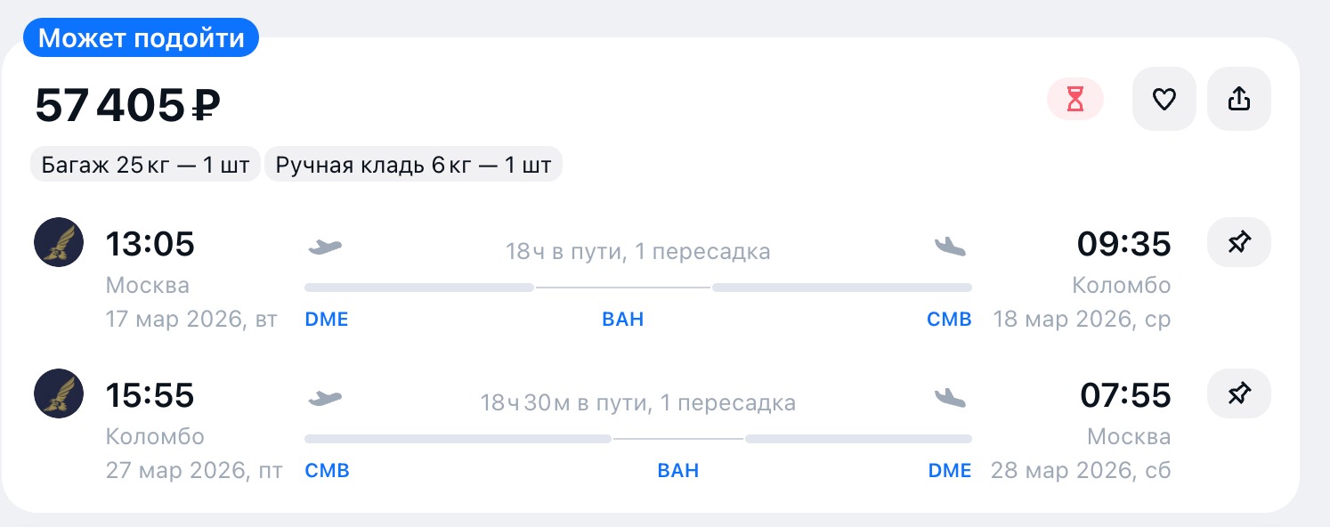 Для тех, кто хочет сэкономить: рейсы с удобными пересадками. Надёжная авиакомпания, комфортные кресла и хороший сервис на борту — можно лететь спокойно.